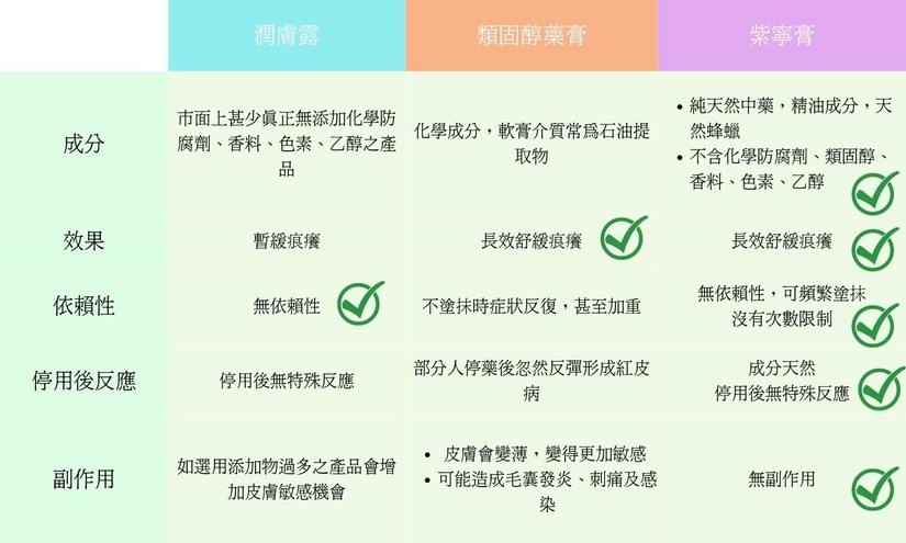 潤膚露 vs 類固醇藥膏 vs 紫寧膏